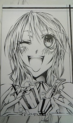 今日は学校で友達への誕生日プレゼントとして、イラスト描いてました。(学校では原稿描けないので)