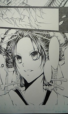 正直、花魁の髪型ってペン入れも大変ですけど、艶ベタも大変です。