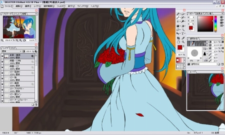 で、今回は前景の薔薇と背景の残りを仕上げました。